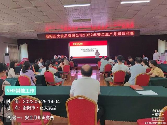 爲繼續貫徹落實安全生産工作,加強我廠安全生産宣傳工作,不斷提升各個員工的安全意識,推進安全生産宣傳工作向更深的方向發展,進一步加強安全生産事故預防能力,洛陽正大食品有限公司借助第二十一個安全生産月策劃開展瞭(le)文化氛圍營造、宣傳教育培訓、安全知識提升等系列安全活動。各部門、車間積極組織員工積極參(cān)與,嚴格按照活動方案部署和要求,紮實開展各項活動,***完成瞭(le)2022年“安全生産月”各項活動任務,有效推動公司安全生産工作。