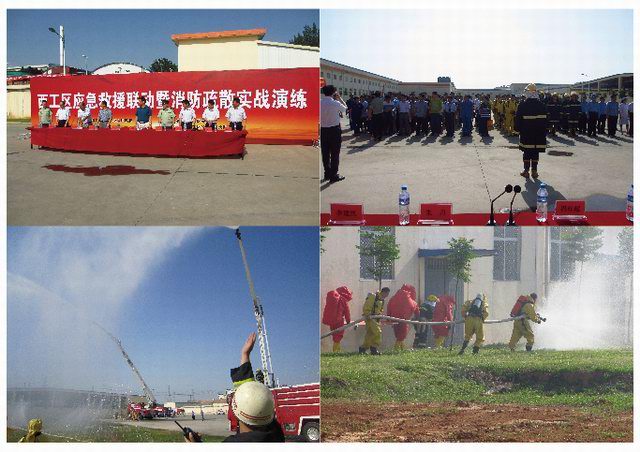 洛陽市安監局領導(dǎo)、洛陽市消防支隊領導(dǎo)、區領導(dǎo)迅速趕赴現場(chǎng)指揮救援,8台消防車、2台救護車在公安交警車開道下呼嘯而至,120名消氣防戰鬥員訓練有素展開救援,生産調整組、安全環保組、警戒保衛組、設備搶修組、信息管理組共50人分别按預案井然有序開展現場工作。由於反應迅速,處置得當,沒有造成周圍水體、空氣環境污染,沒有發生其他次生事故,1名中毒的現場操作人員得到及時救治。本次演練爲力求貼近實戰,對突發事故應急處理真正起到指導和演練作用,改變以往演練模式,應急指揮部演練中還臨時增設瞭演練科目。