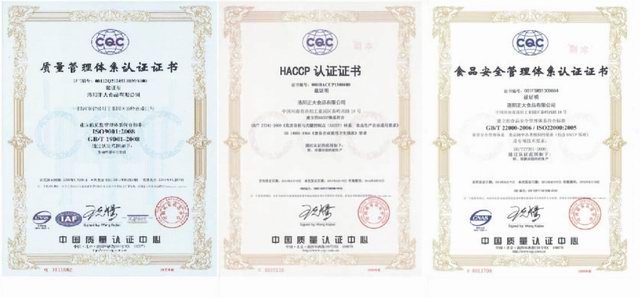 2013年8月19日,公司正式獲得食品安全管理、HACCP管理體系兩個管理體系的認證證書。公司自2012年11月18日開業以來,在全體幹部員工齊心協力基礎上,已成功通過瞭(le)質量管理體系、食品安全管理體系、HACCP管理體系三個管理體系認證,爲産品在全國各地市場準入、出口備(bèi)案及管理水平提升奠定瞭(le)基礎。
