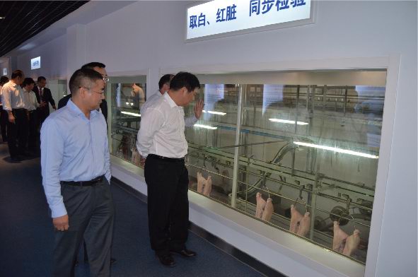 鮑市長一行首先通過參觀廊參觀瞭(le)公司生産現場。鄭寶振副董事長對洛陽市鮑市長一行莅臨洛陽正大指導表示歡迎,並(bìng)對洛陽市政府一直以來對正大集團在洛陽項目的支持表示感謝。在公司三樓會議室,喬光斌總經理彙報瞭(le)洛陽正大生産經營、項目建設規劃、食品安全管理、市場運作模式、公司發展願景等相關工作情況;鄭寶振副董事長表示:洛陽正大食品有限公司是集團投資建設的***家生豬屠宰和豬肉深加工項目,集團對該項目高度重視,利用正大集團優勢,圍繞洛陽正大100萬頭生豬屠宰項目,在洛陽地區打造從玉米種植、飼料加工、良種豬培育、商品豬養殖、屠宰分割、肉制品精深加工、冷鏈物流、連鎖專賣爲一體的全産業鏈發展模式,確保産品的安全可追溯,下一步要高标準建設洛陽正大深加工項目,並(bìng)将在洛陽周邊偃師、宜陽、伊川、孟津等區域拓展安全豬源養殖基地,洛陽正大食品有限公司向洛陽市民提供安全、健康、營養、美味的正大食品,希望市政府在洛陽正大深加工項目建設和生豬養殖建設方面給予支持和幫助。